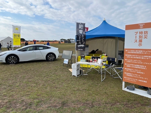 当日は、浜松市の防災コーナーの一角に「防災給電」として、プリウスPHEVを展示して