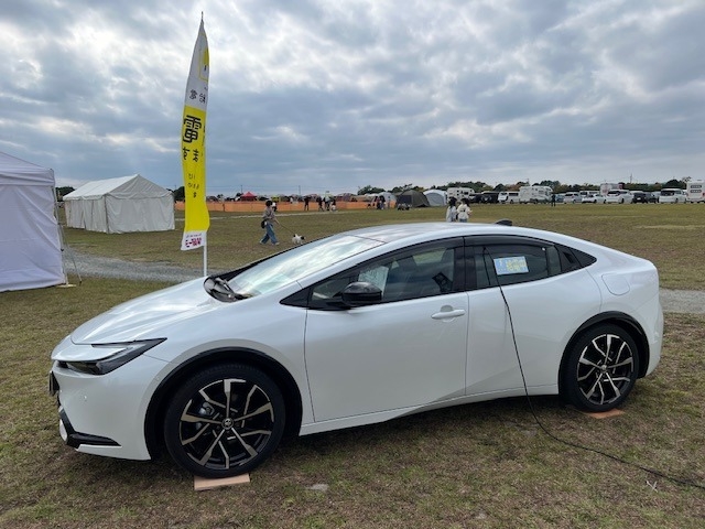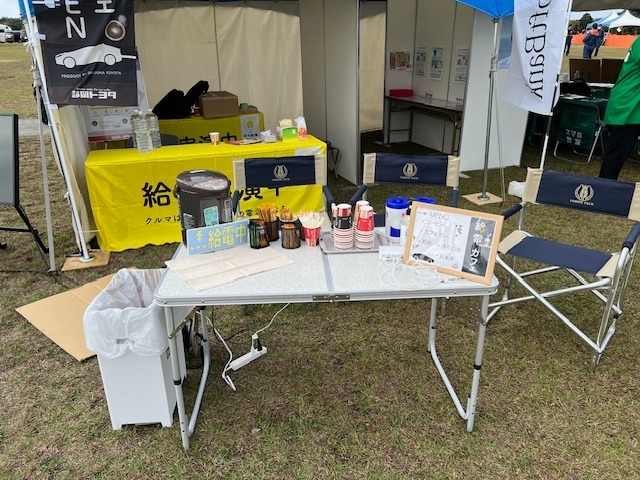 給電用の車両にプリウスPHEV ポットでお湯を沸かし温かいお飲み物をご提供