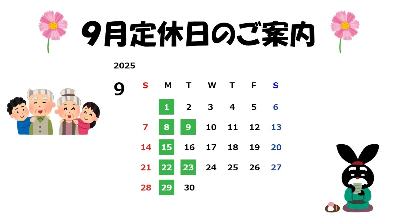 9月 定休日のご案内