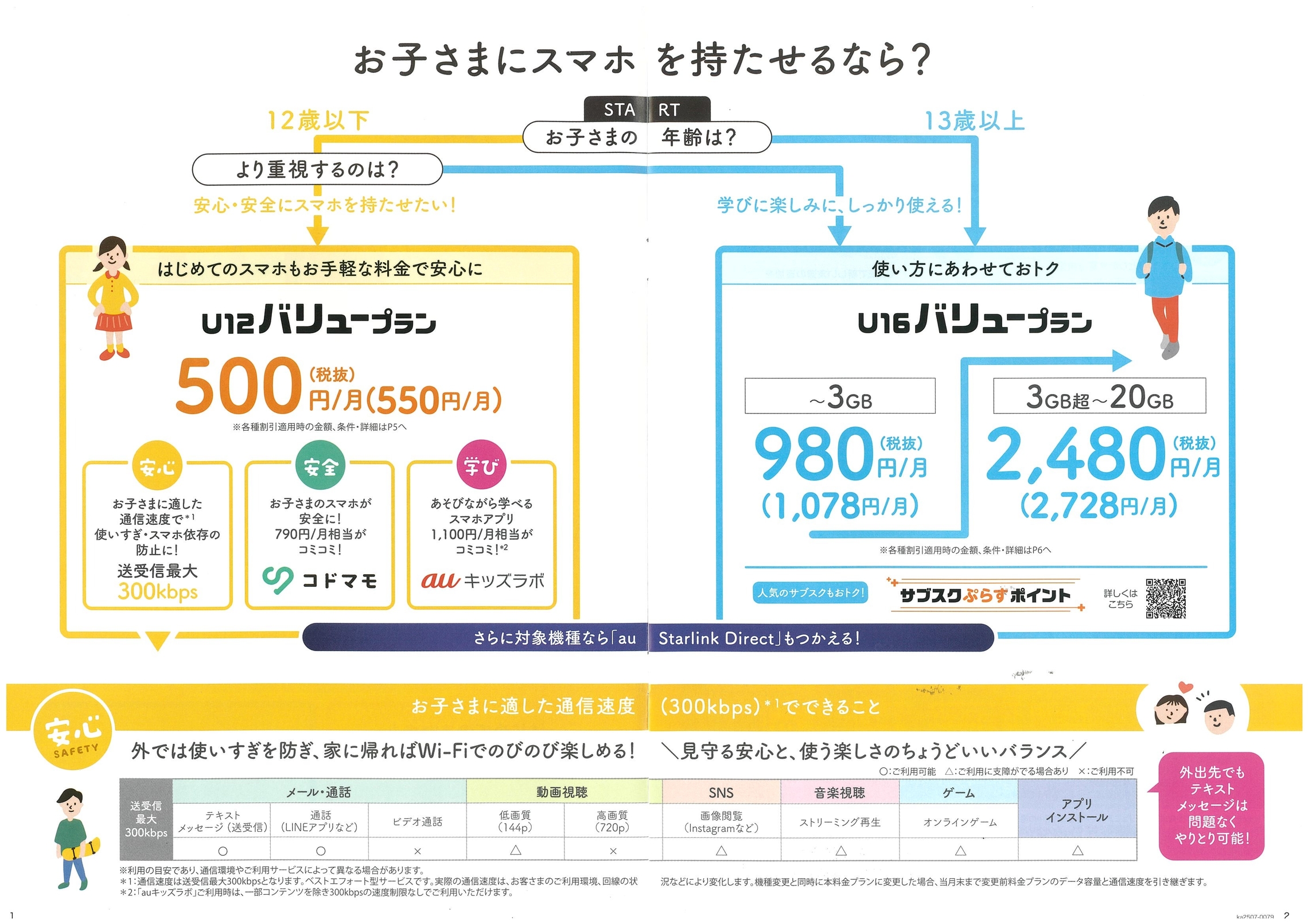 12歳以下のお子さまにはU12バリュープラン、13歳以上のお子さまにはU16バリュープランをおすすめしております📱