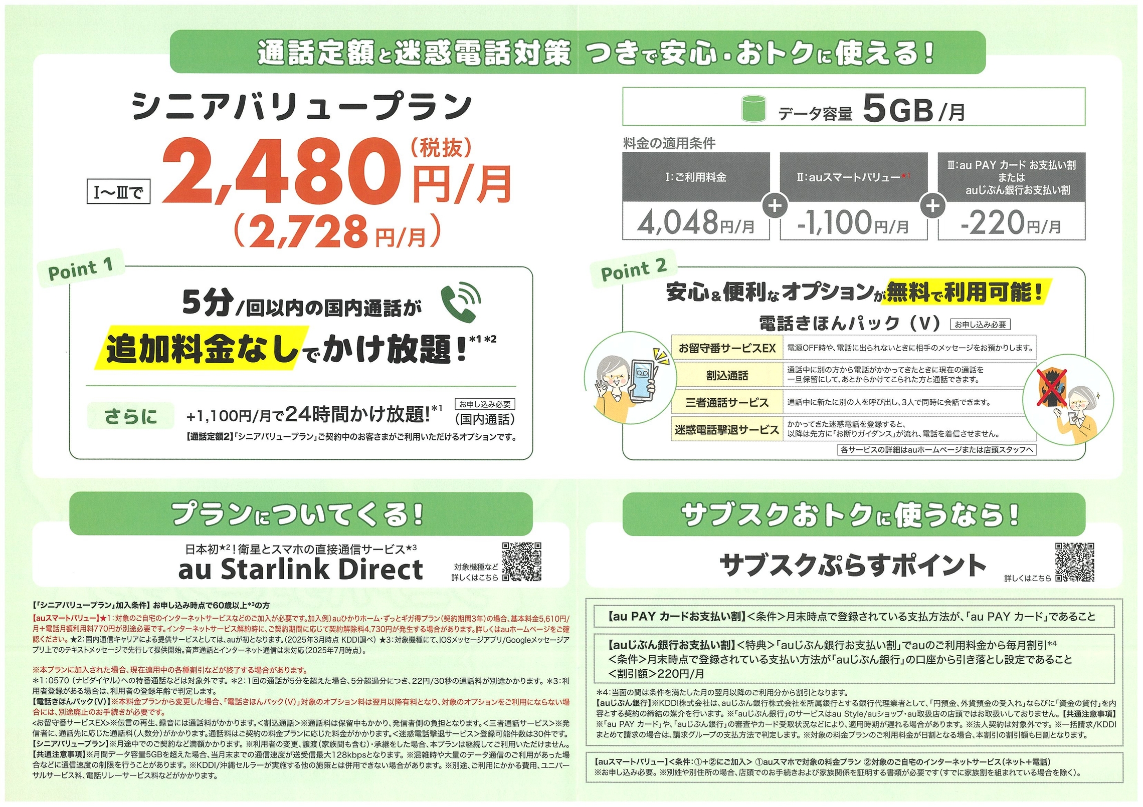 60歳以上のお客様にはシニアバリュープランをおすすめしております📱