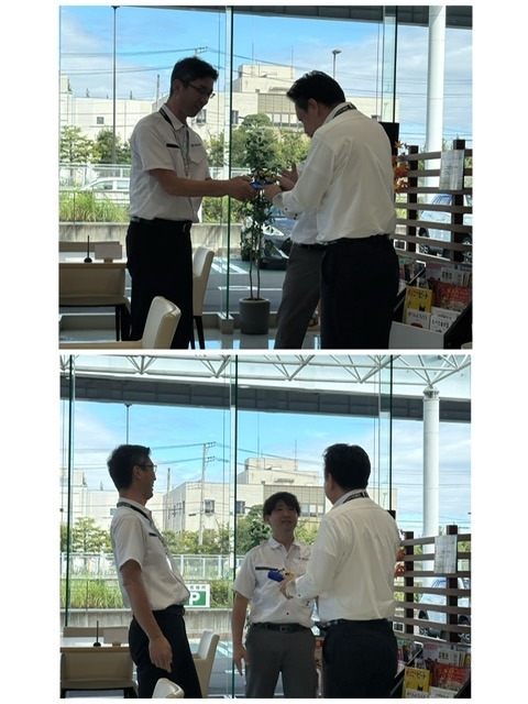 朝の開店前、ショールームでアドバイザー二人と店長が楽しそうに😊