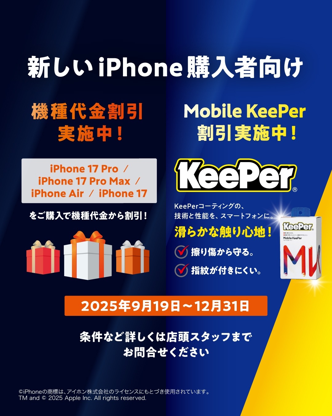 「機種代金割引」と「Mobile KeePer割引」を実施中です!
