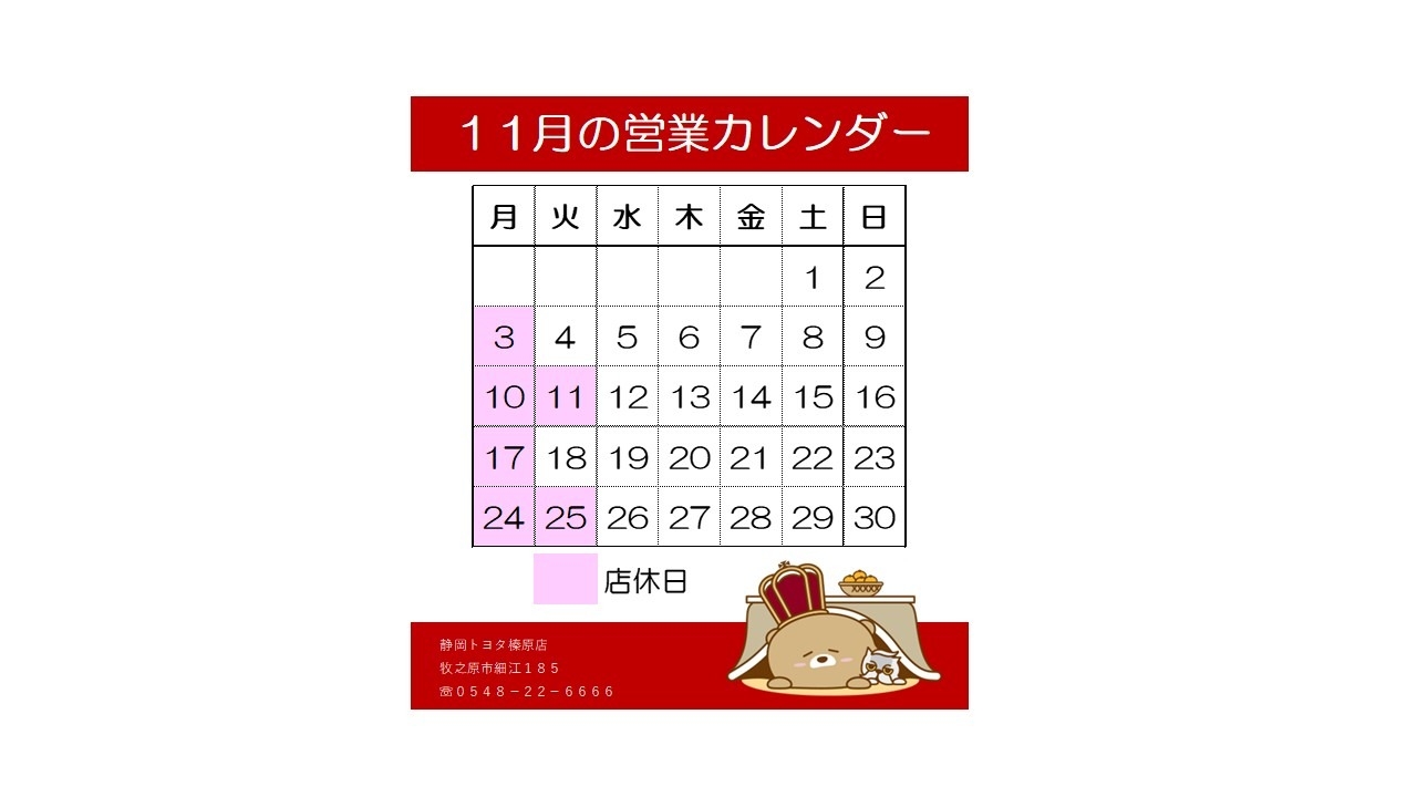 🍂🍂🍂🍂11月の営業カレンダー🍂🍂🍂🍂