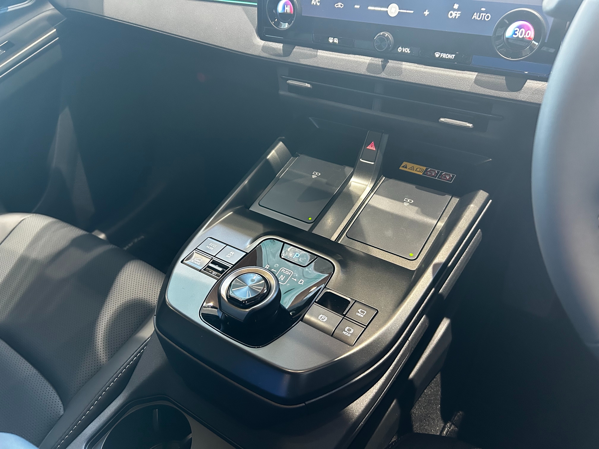 押し下げて、右に回すとドライブへ、左に回すとリバースへ切り替わります。