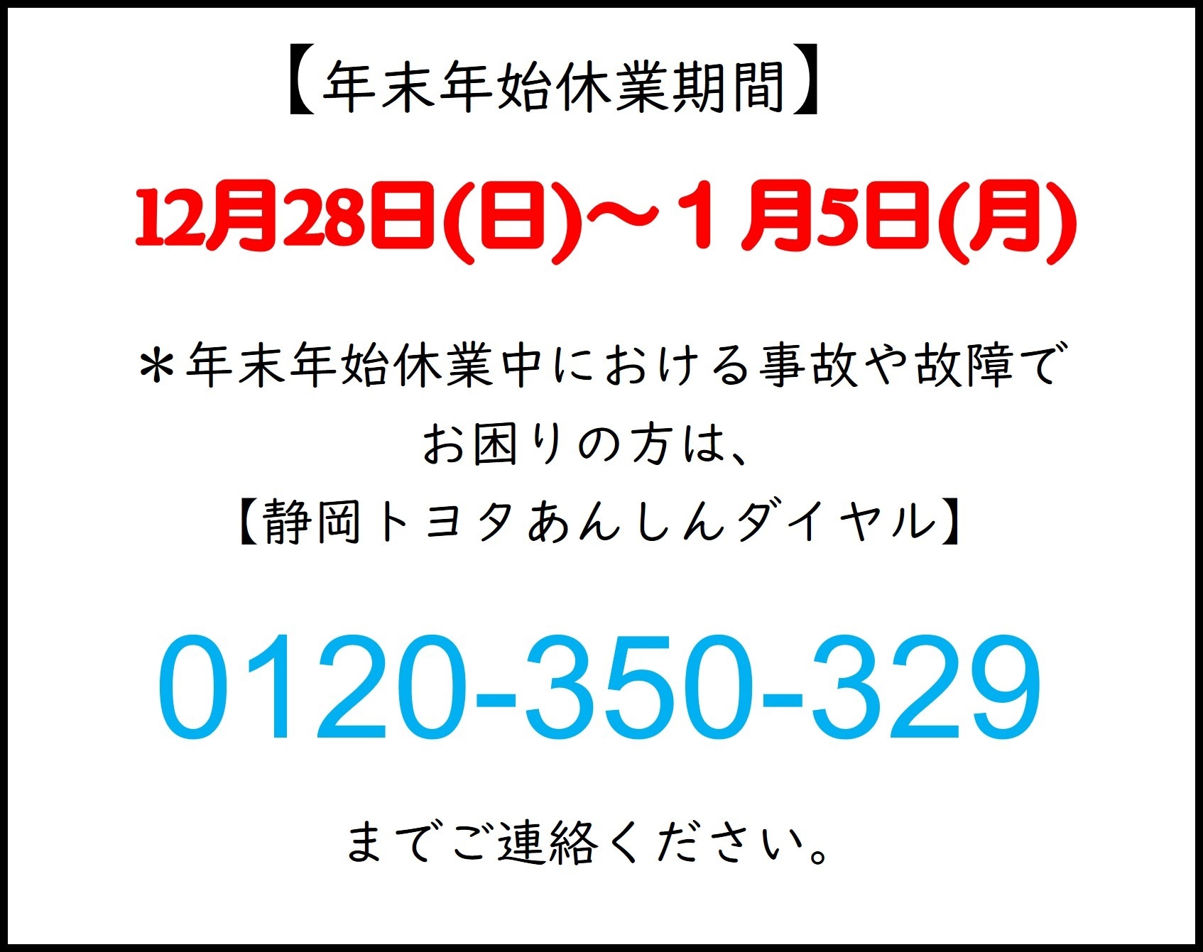 今回は、年末年始の休業日のご案内です。