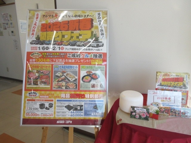 本年もどうぞよろしくお願いいたします 2026.01.14 2026 新春🐎 初売りフェア開催中です‼️ 1/6(火)~2/1(日) 新車・中古車 ご成約で 午(うま)🐎いが当たる!! 抽選で130名様に抽選でプレゼント! (抽選には自動エントリー) A賞 10名様 牛肉食べ比べセット B賞 20名様 北海道海産物セット C賞 100名様 静岡県グルメセット 店内加湿器………1月はアロマの香り バラ🌹🌹🌹です 前の記事へ 店舗ブログ一覧に戻る 次の記事へ