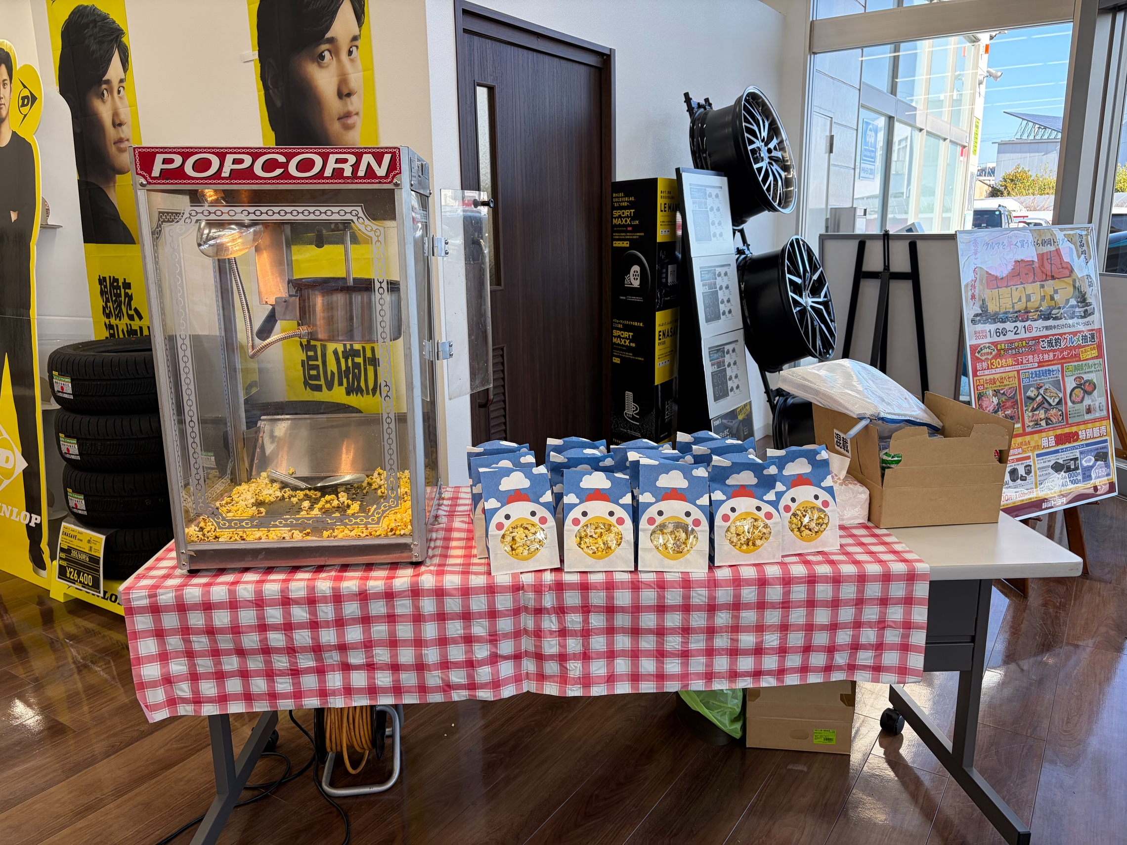 ご来店のお客様に出来立てポップコーンお配りしてます🥰🍿