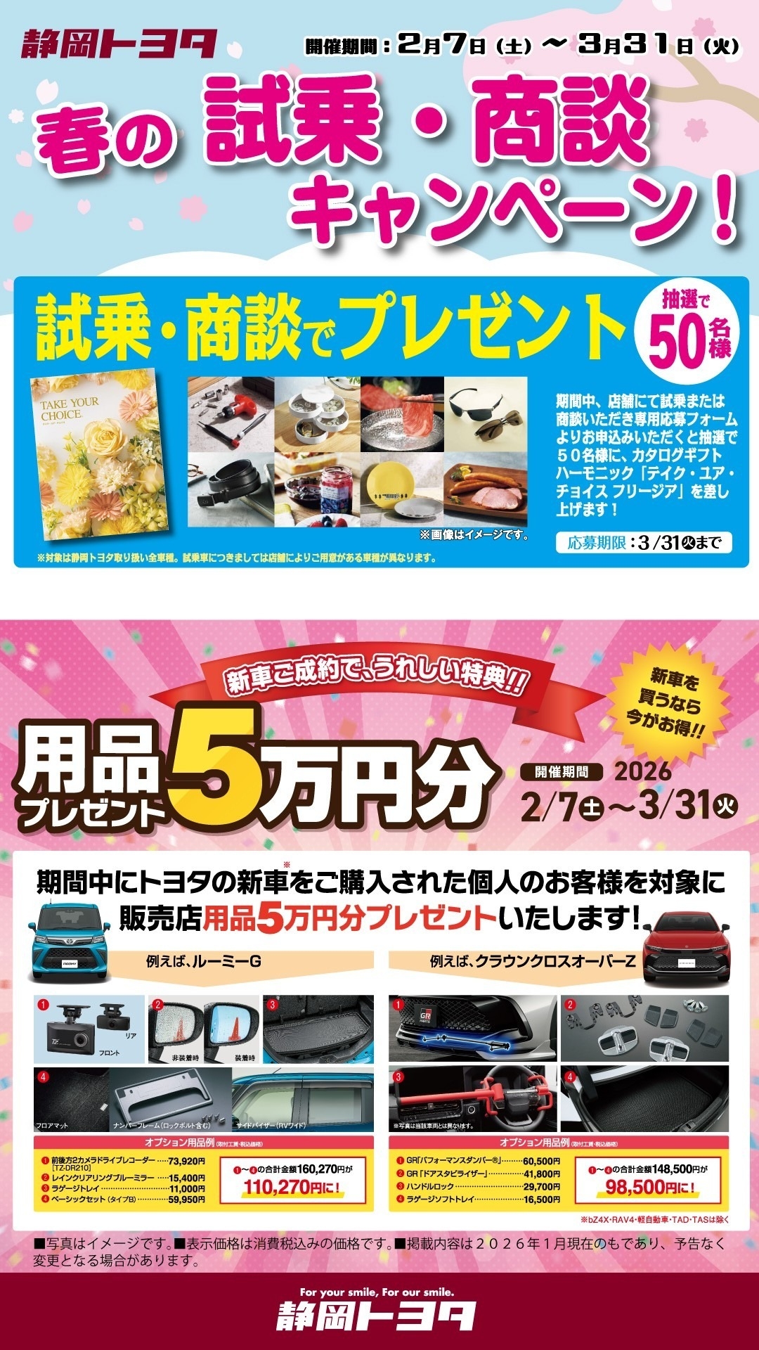 店頭にて試乗または商談いただいたお客様の中から抽選で50名の方にカタログギフトプレゼント!