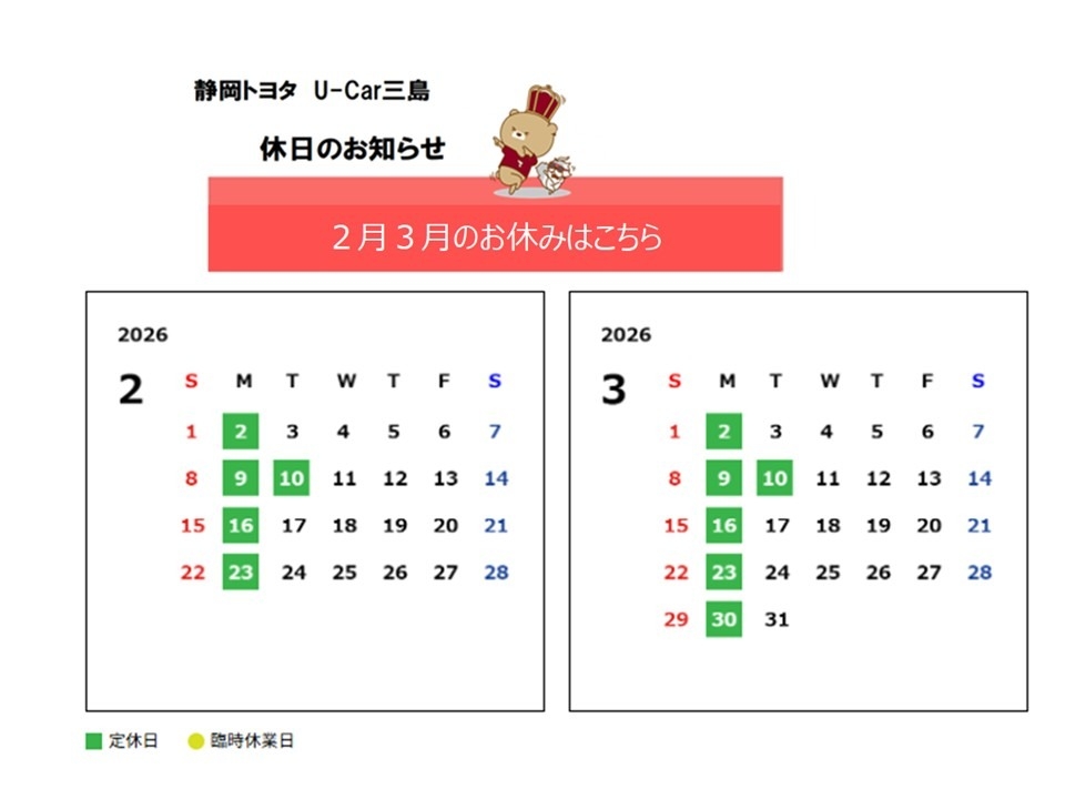 U-Car三島 2月のご案内 2026.02.03 2月のイベント案内 寒いが続きますが 皆さんお元気ですか いつも ブログをご覧いただきありがとうございます 2月は 節分・バレンタインデーなど イベントが続きますが な・ん・と 当店のサボテンが ♡ハートに・・ ほっこりしますね~ そして・・ 当店の2月限定ドリンクは ショコララテ です ぜひお気軽にお立ち寄りくださいませ お車をお探しの方は コチラを・・・クリックしてくださいね 前の記事へ 店舗ブログ一覧に戻る 次の記事へ