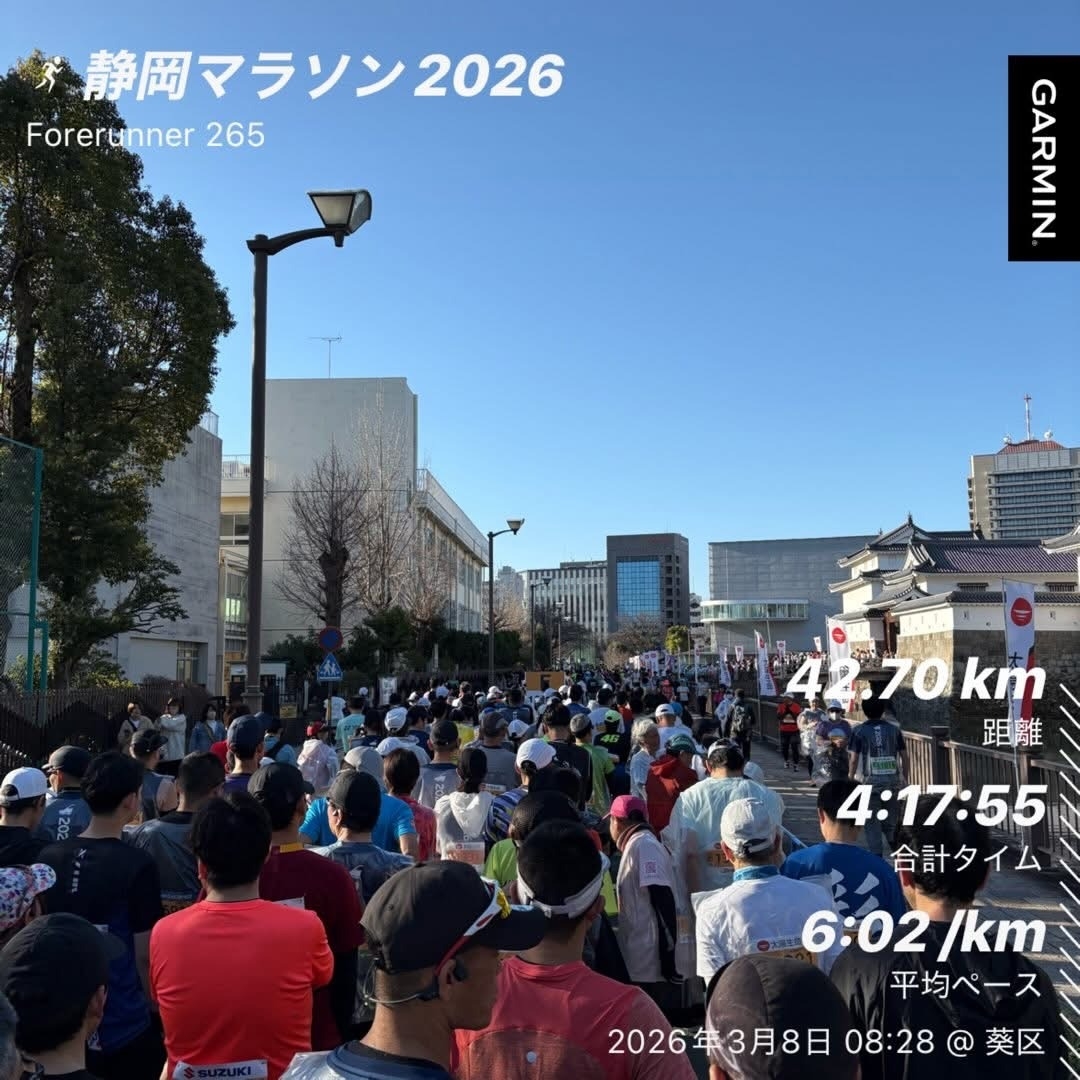 先日静岡マラソンを4時間17分で無事走り切りました木佐森です。