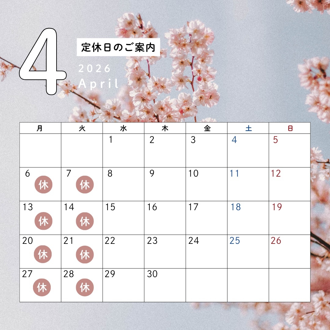 4月定休日のお知らせです↓↓↓