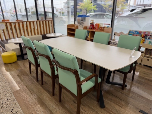 やさしいグリーンの椅子と白いテーブルで、ほっと落ち着ける空間に🍃