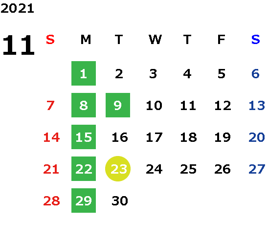 皆様こんにちは😊 いつも榛原店のブログをご覧いただきありがとうございます! ついこの間まで、「暑いですね~」が挨拶の言葉でしたが、 今は「寒くなってきましたね」に変わりましたね。 コンビニでも”おでん”や”肉まん”が売られていて、 「これからどんどん寒くなってくるんだな」と感じます。 体調を崩しやすくなりますので、皆様ご自愛ください。 🍂🍂🍂🍂11月の営業カレンダー🍂🍂🍂🍂 ☆★☆★☆★☆★☆★☆★☆★☆★☆★☆★☆★ 静岡トヨタ自動車株式会社 榛原店 🏠牧之原細江185 ☎0548-22-6666 定休日 月曜日、第2第4火曜日 ☆★☆★☆★☆★☆★☆★☆★☆★☆★☆★