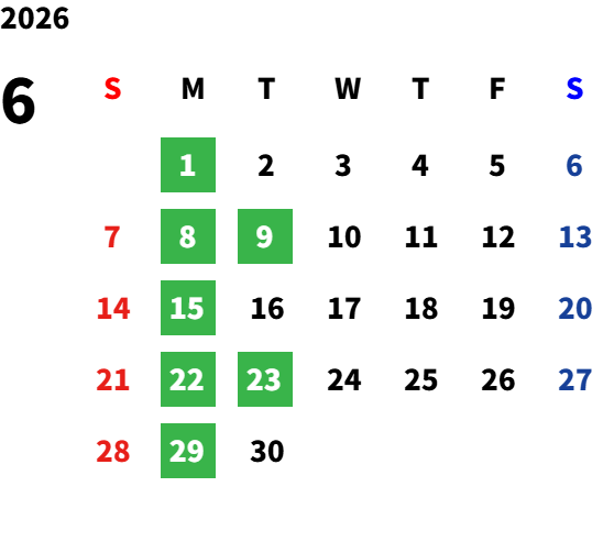 いつも大仁店のブログをご覧いただきありがとうございます!! 今日は2月の休日のお知らせです✨ ※🟩は定休日です よろしくお願いいたします ⚜️⚜️⚜️⚜️⚜️⚜️⚜️⚜️⚜️⚜️⚜️⚜️⚜️⚜️⚜️ 静岡トヨタ自動車(株)大仁店 🏠住所:伊豆の国市御門53-1 📞TEL:0558-76-5656 🚩定休日:毎週月曜日,第二火曜日 (令和8年1月までは第四火曜日も定休日) ⏰営業時間:9:30~18:00 大仁店HP➡️コチラから ⚜️⚜️⚜️⚜️⚜️⚜️⚜️⚜️⚜️⚜️⚜️⚜️⚜️⚜️⚜️