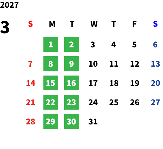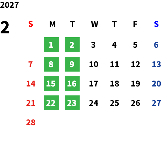 月曜日・火曜日(ただし、火曜日は営業する場合がありますので、詳しくはお問い合わせください。)